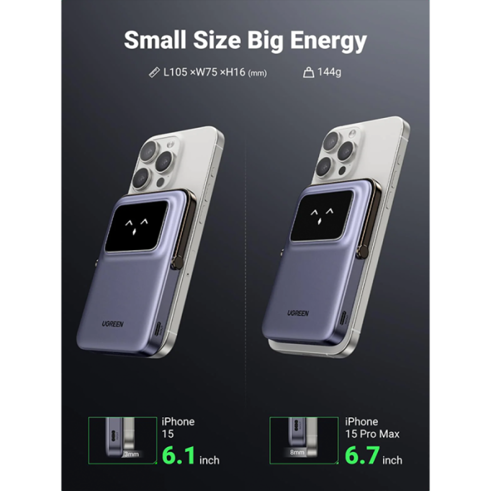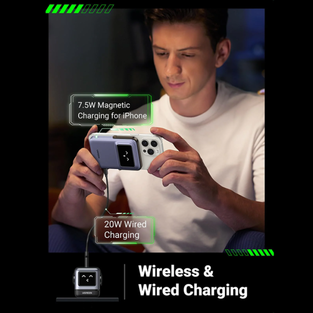 شاحن متنقل يوجرين Uno لاسلكي مغناطيسي بتقنية MagSafe بسعة 5000 مللي أمبير بقوة 20 واط - رمادي