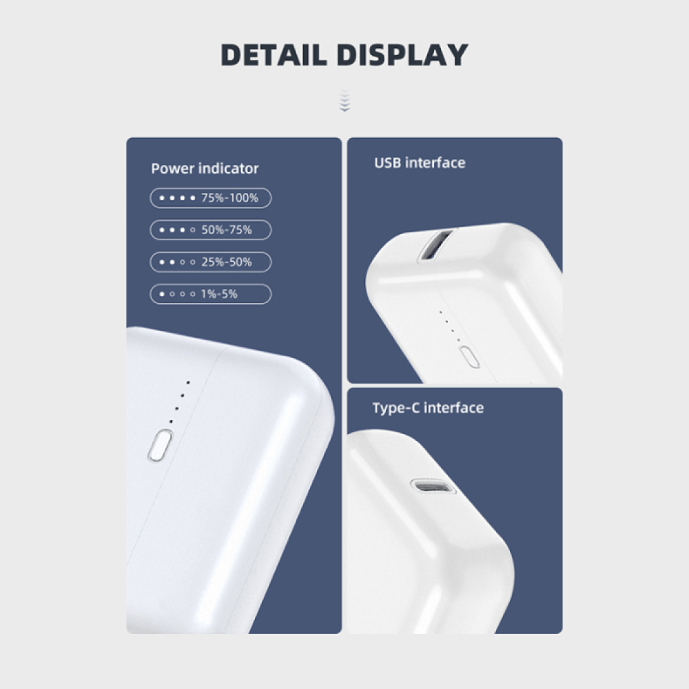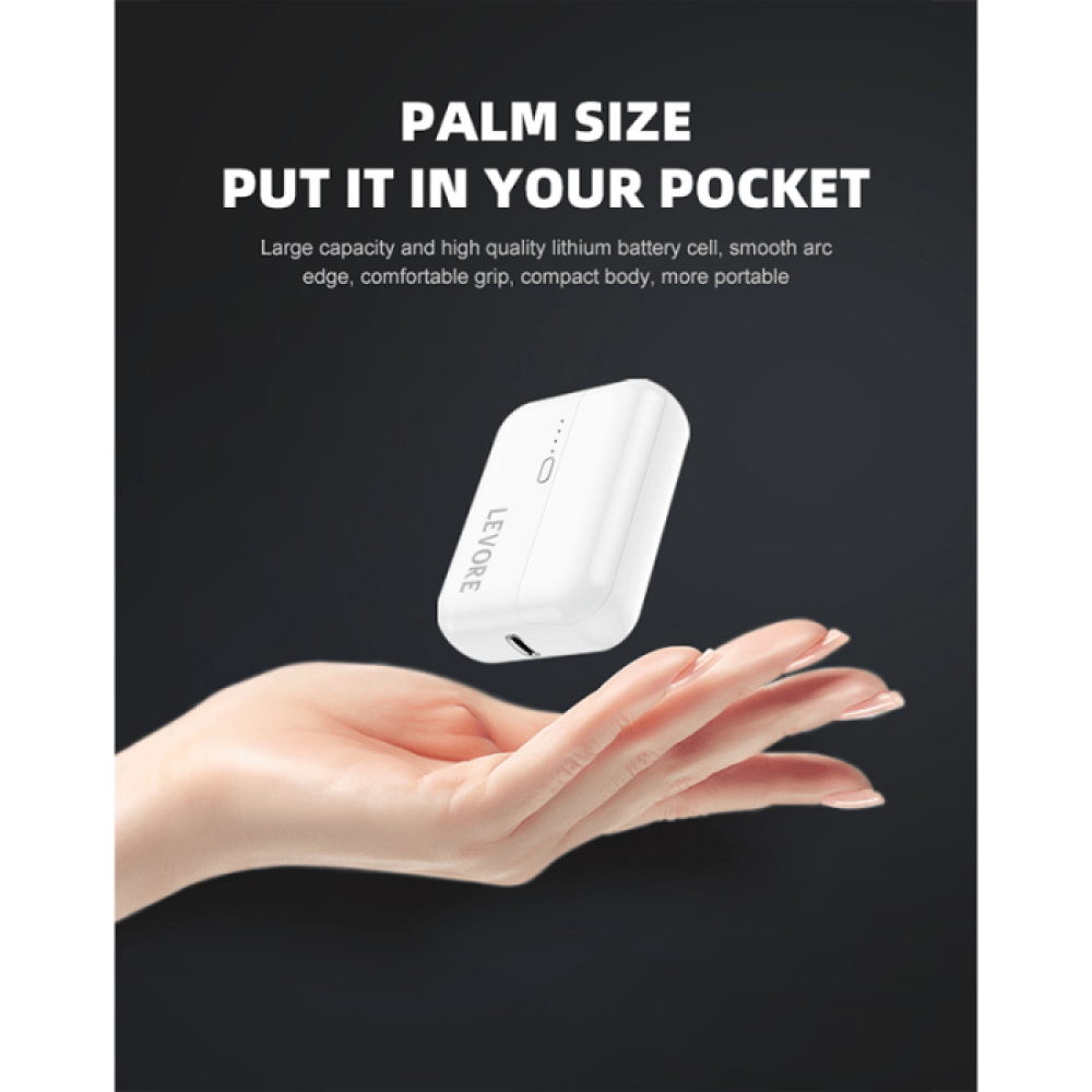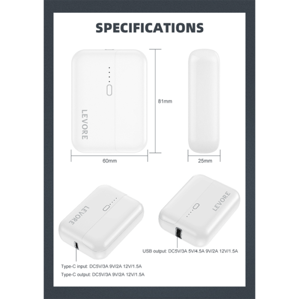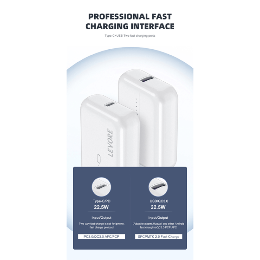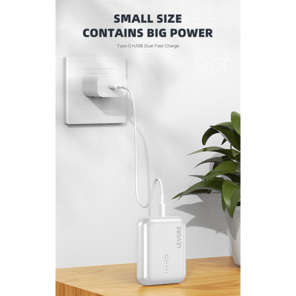 شاحن متنقل ليفوري صغير بسعة 10000 ملي أمبير سريع منفذ PD ومنفذ USB - أبيض