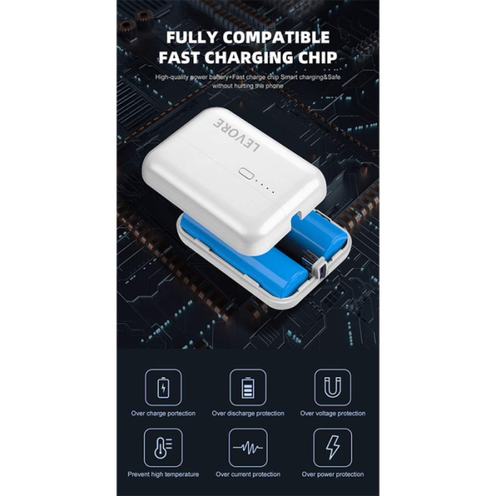 random_sku_1753005988687_شاحن متنقل ليفوري صغير بسعة 10000 ملي أمبير سريع منفذ PD ومنفذ USB - أبيض