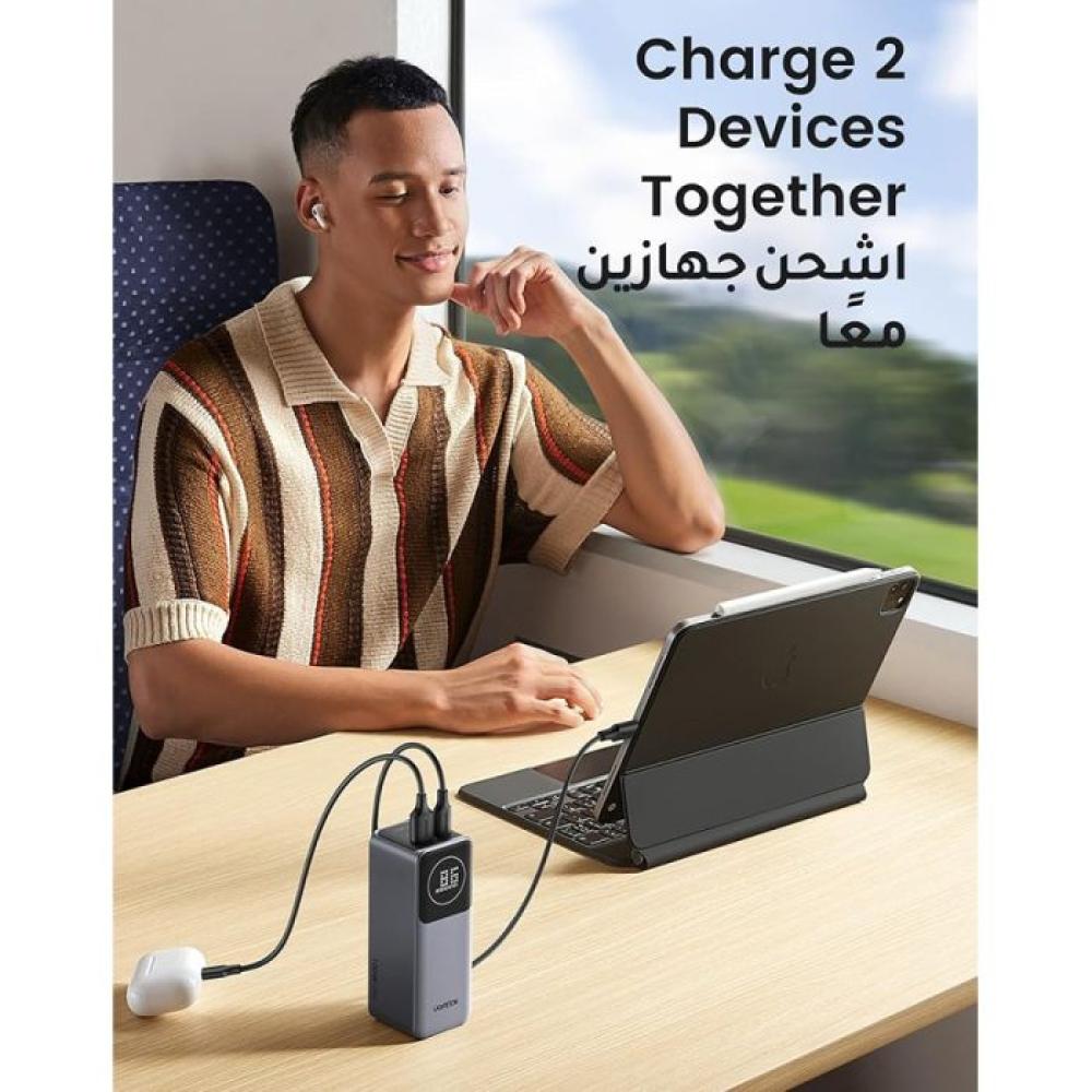 • شحن سريع للغاية: اشحن جهاز iPad Pro M4 إلى 40% في 30 دقيقة وجهاز iPhone 15 إلى 60% في وقت قصير. حتى جهاز MacBook Pro مقاس 16 بوصة يشحن حتى 43% في 30 دقيقة. جاهز دائمًا للذهاب أينما كنت.