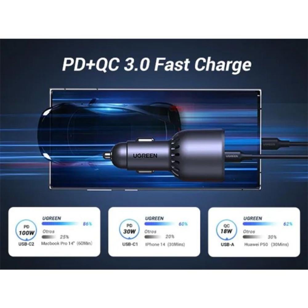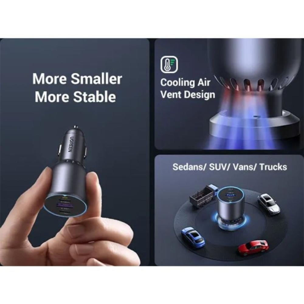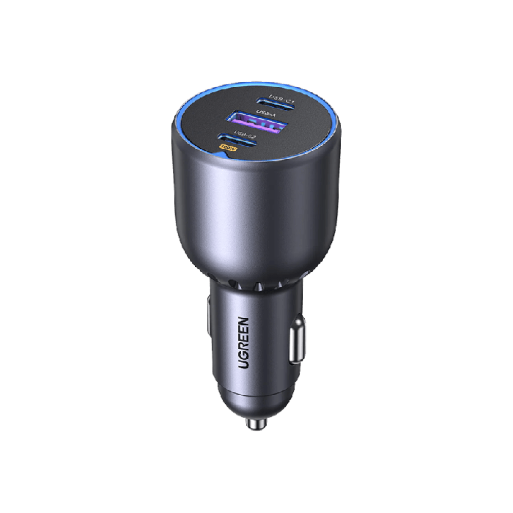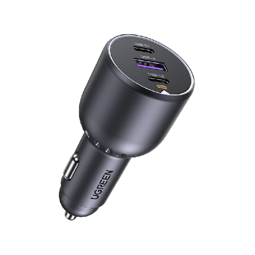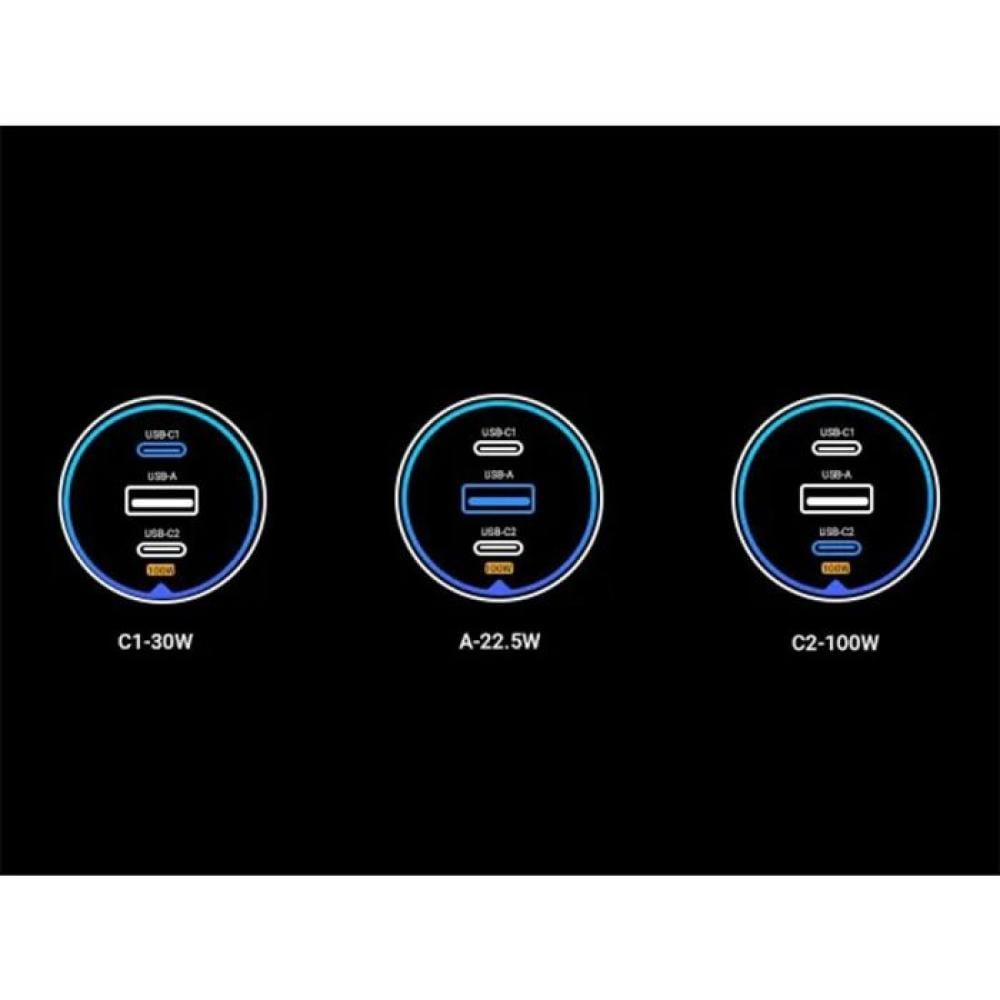 شاحن سيارة يوجرين بمنفذين USB-C وبمنفذ USB بقوة 130 واط - رمادي داكن