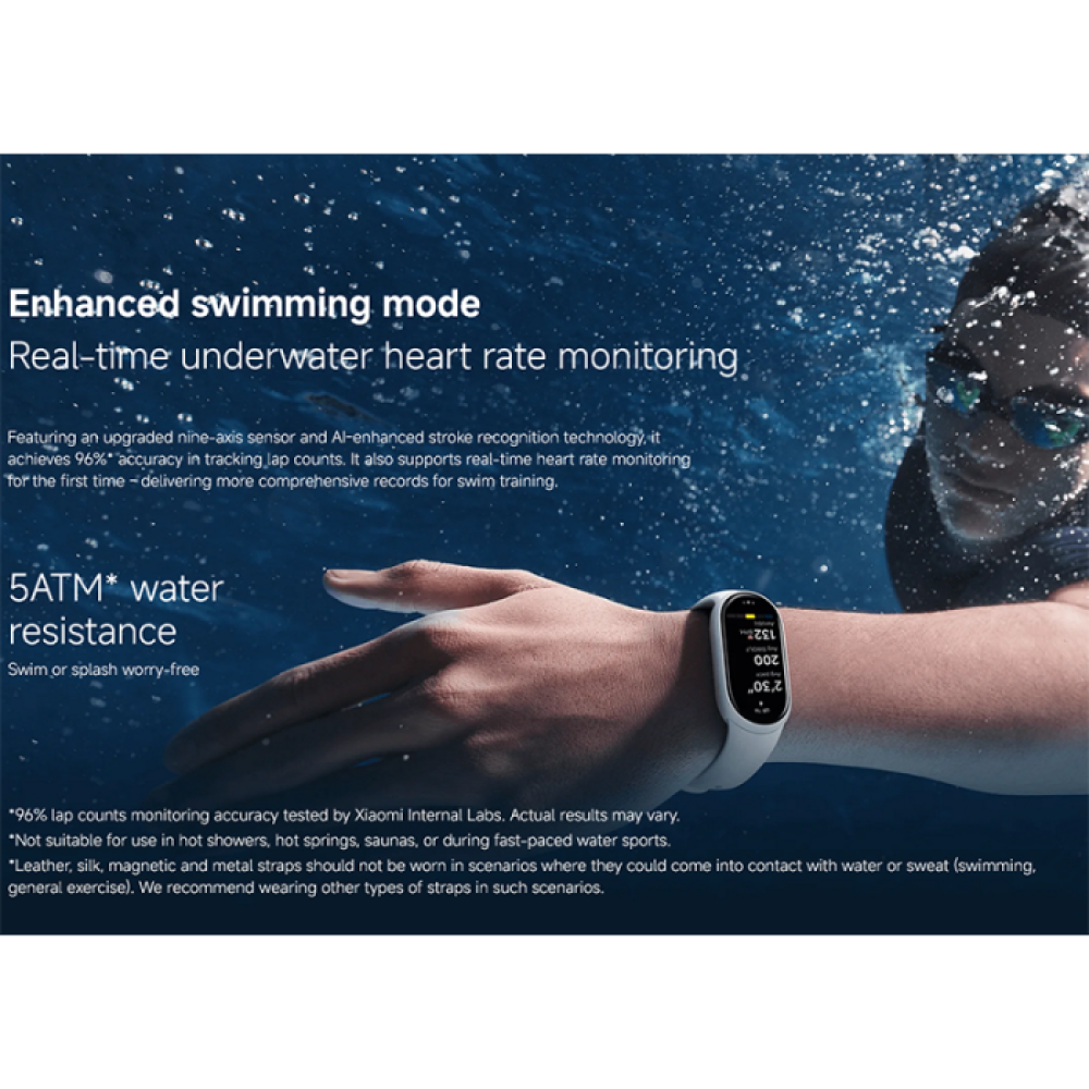 - المستشعرات: مستشعر معدل ضربات القلب، مستشعر SpO₂، مقياس التسارع، الجيروسكوب، ومستشعر الضوء المحيط، مع تحسين شامل لتتبع النوم.