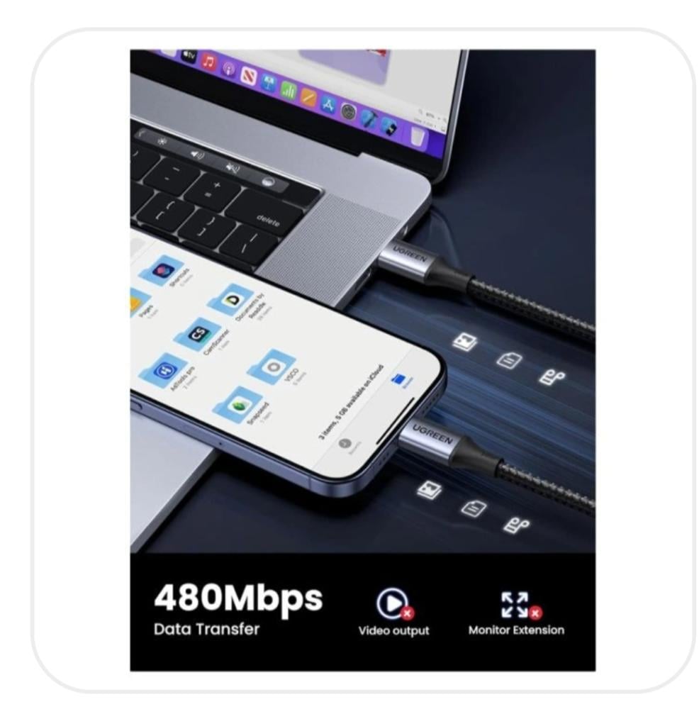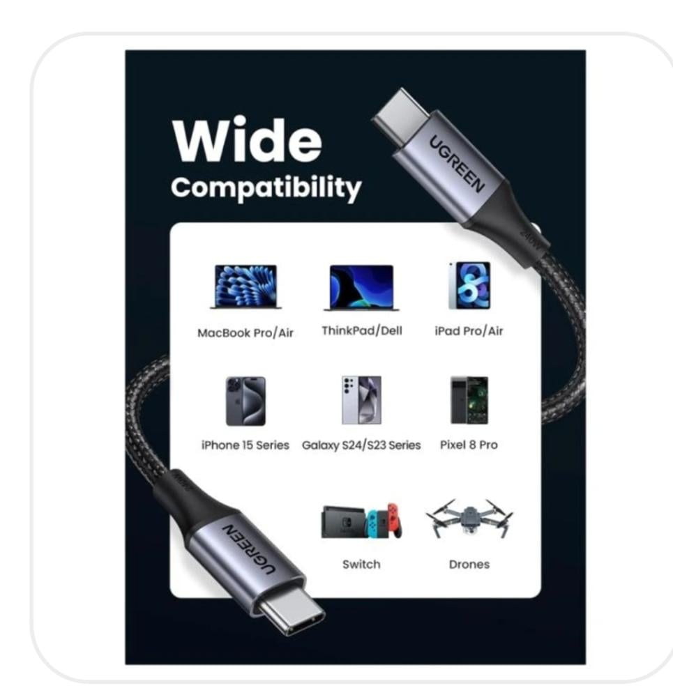 random_sku_1758041440185_سلك شاحن يوجرين سريع من USB-C إلى USB-C مظفر بطول 2 م وبقوة 240 واط - أسود